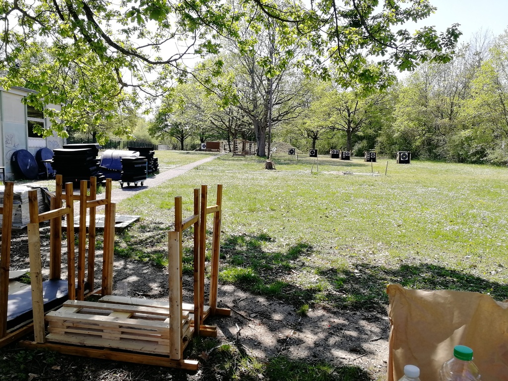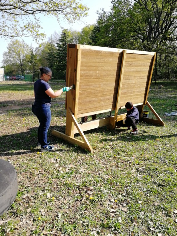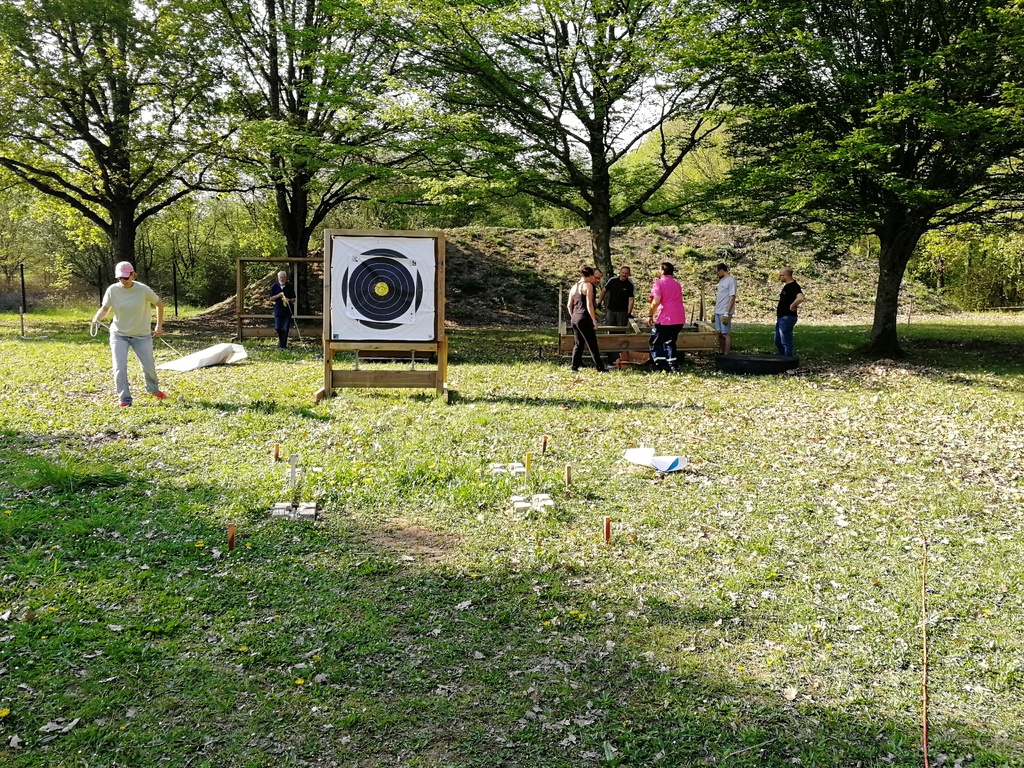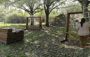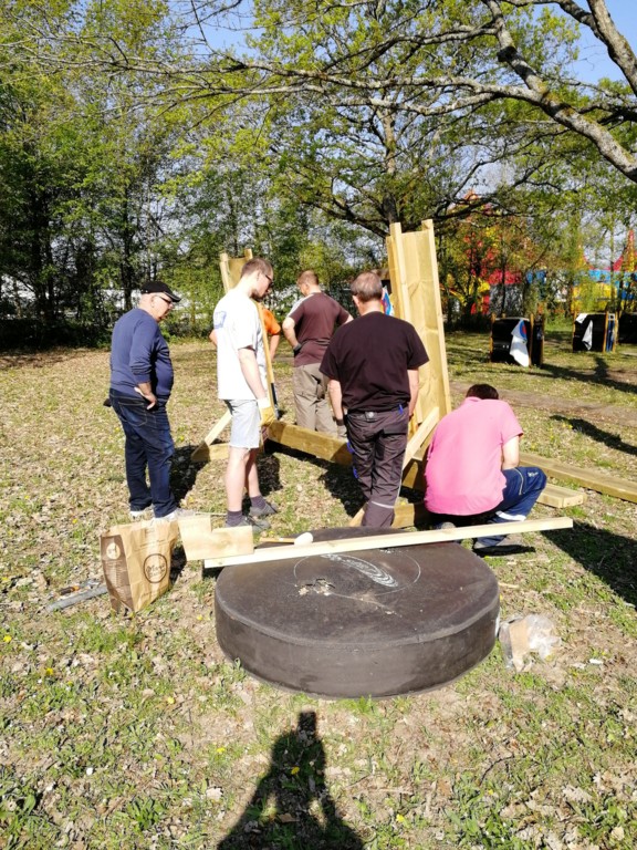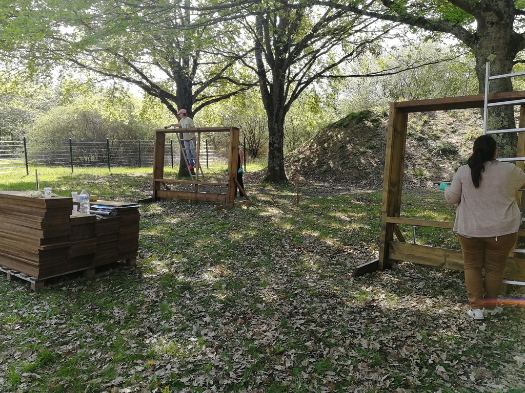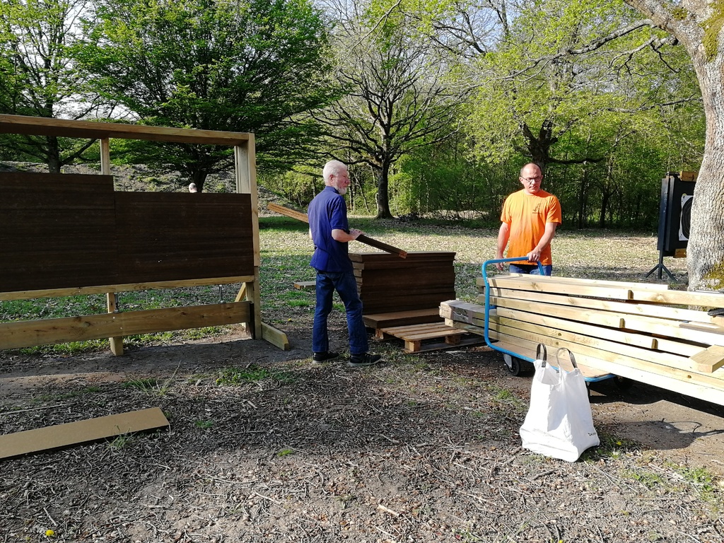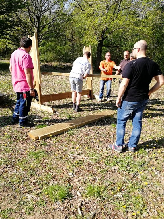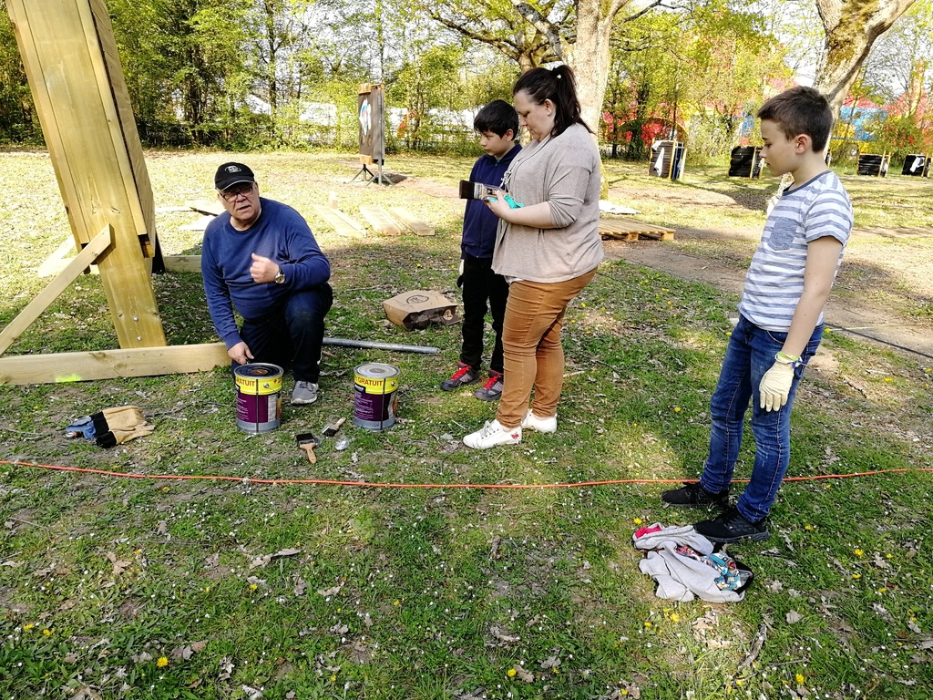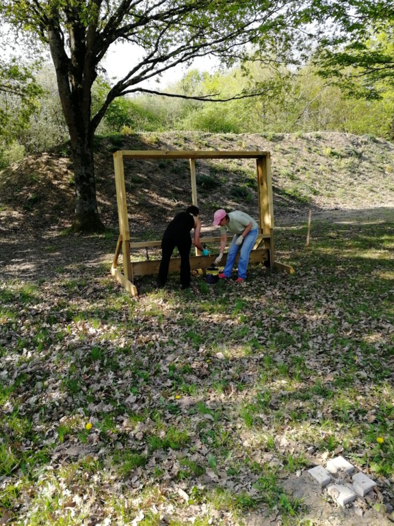 Ce samedi, une partie des archers du Club s'est portée volontaire pour porter du bois, découper du caoutchouc, visser, dévisser, déplacer, lasurer, etc.....bref, monter des cibles sur le pas de tir extérieur.