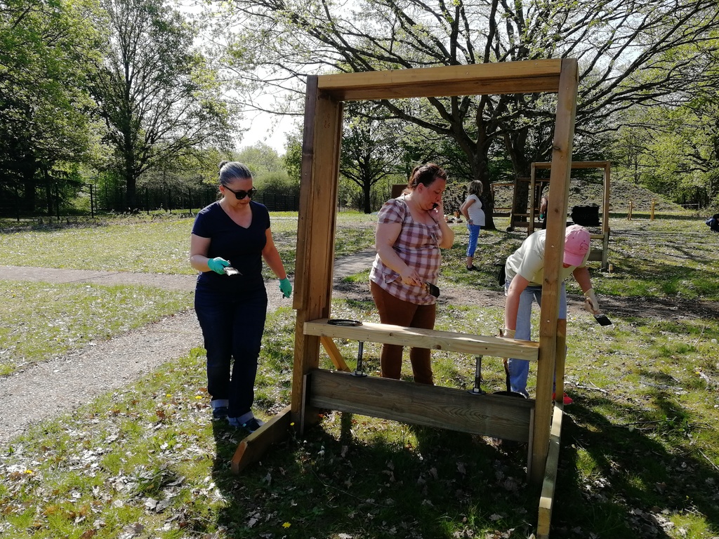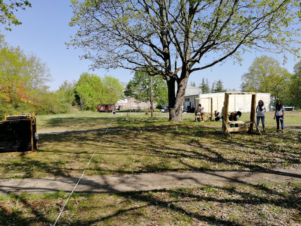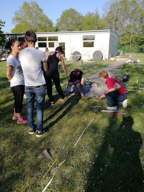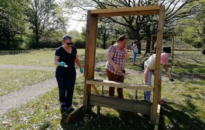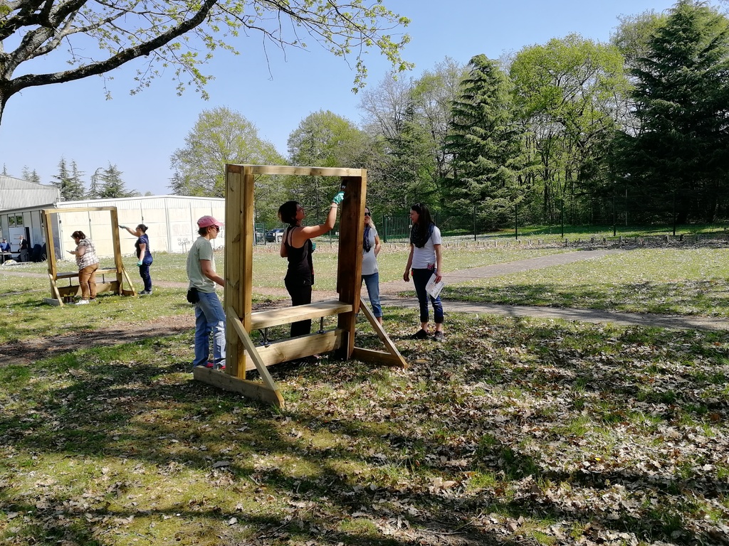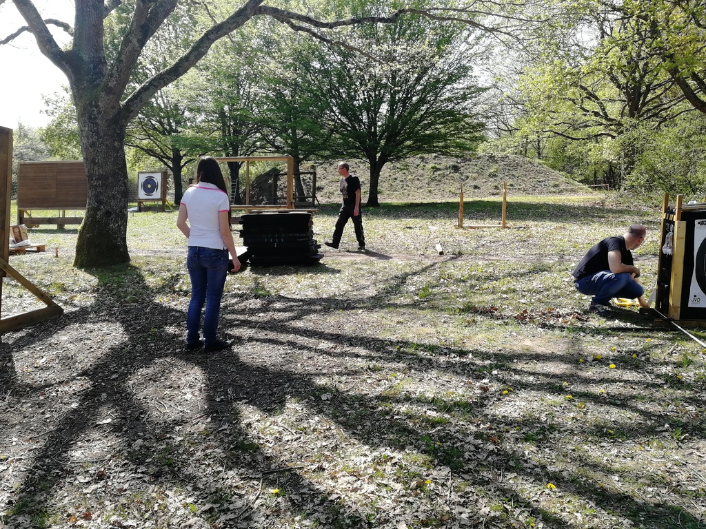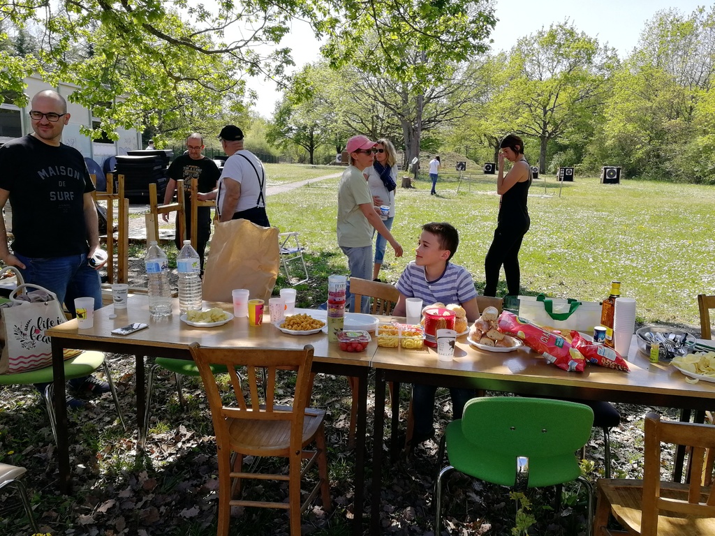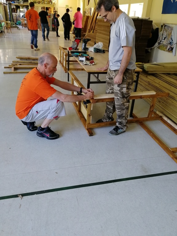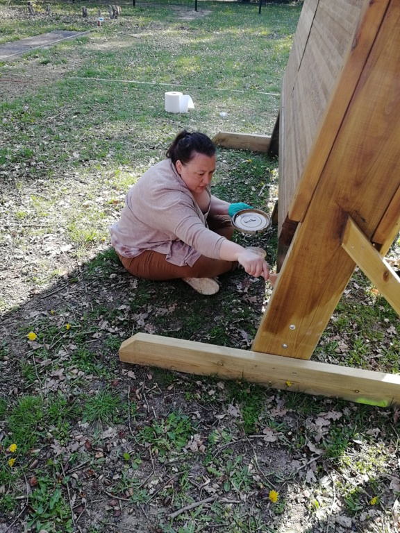 Ce samedi, une partie des archers du Club s'est portée volontaire pour porter du bois, découper du caoutchouc, visser, dévisser, déplacer, lasurer, etc.....bref, monter des cibles sur le pas de tir extérieur.
