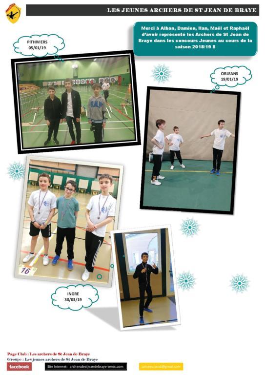 Merci à Alban, Damien, Ilan, Mael et Raphael d'avoir représenté les Archers de St Jean de Braye lors des concours Jeunes de la saison 2018/19!!