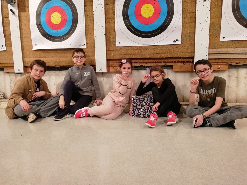 Ils n'ont pas l'air contents, là, nos archers de l'école de tir?! Bah si !!! Trois plumes blanches et deux flèches blanches plus tard, ils sont RAVIS !! Et qu'ont-ils fait après la photo que je leur ai extorquée………??? Ils m'ont demandé que j'accroche leur récompense sur leur carquois, pour faire comme les autres archers 😁!! Finalement, l'obtention du premier niveau, c'est avoir l'impression de faire enfin partie de la famille des archers. Qu'ils restent surtout comme ils sont aujourd'hui: enthousiastes, souriants, curieux…. C'est une vraie bouffée d'oxygène ces jeunes apprentis!! Une mention spéciale pour Thomas qui passe sa flèche blanche haut la main en ayant commencé le tir à l'arc mi-septembre…..