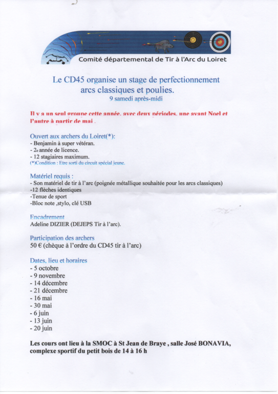 Le CD 45 organise un stage de perfectionnement arcs classiques et poulies.