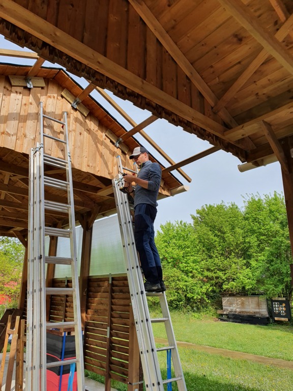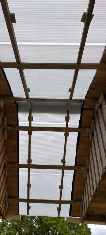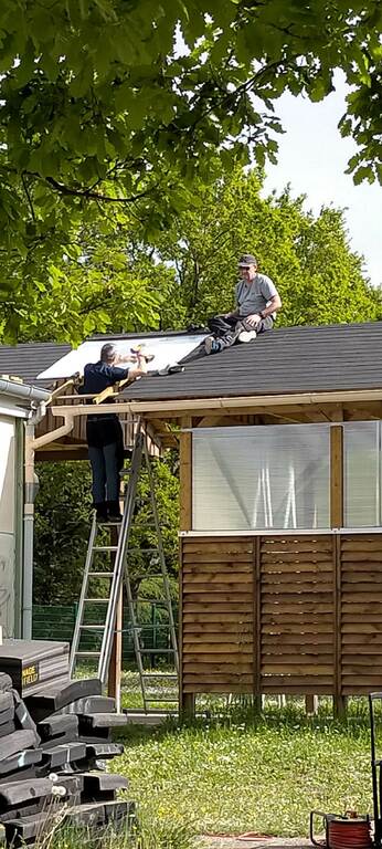 > Toits intermédiaires posés entre les carports